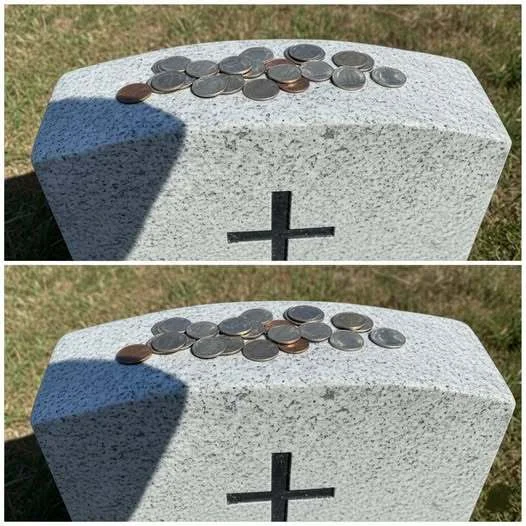 To the untrained eye, the coins scattered on a veteran’s headstone might look like clutter. But look closer. In the solemn peace of a military