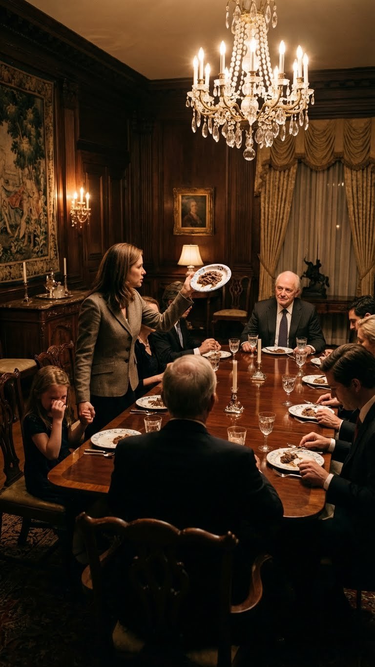 He pointed a manicured finger at a flimsy paper plate sitting on the polished mahogany of his dining table. On it was a heap of wet, brown sludge. Eight family members sat frozen around that birthday dinner table. Nobody said a word. Nobody moved. They just kept cutting their filet mignon and sipping their vintage Cabernet like nothing was happening.