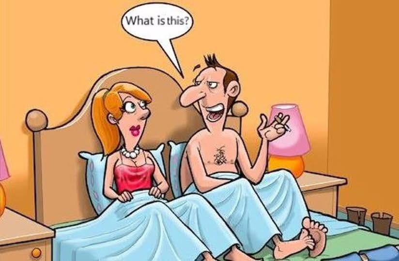 A woman was in bed with her lover when she heard her husband opening the front door.