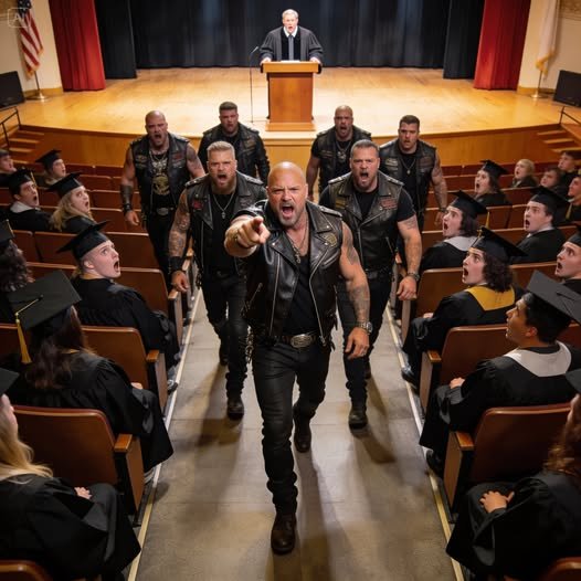 The lead biker reached the front of the stage. He didn’t look at the Dean. He didn’t look at the faculty. He turned his massive frame toward Row M.