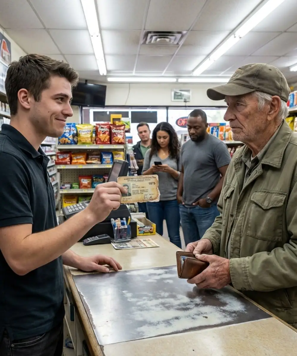Arthur didn’t raise his voice. He didn’t argue. He simply slid the cracked leather wallet back into his pocket with the slow care of someone who had learned long ago that patience outlasts pride. The line behind him shifted and sighed, irritation buzzing in the air.