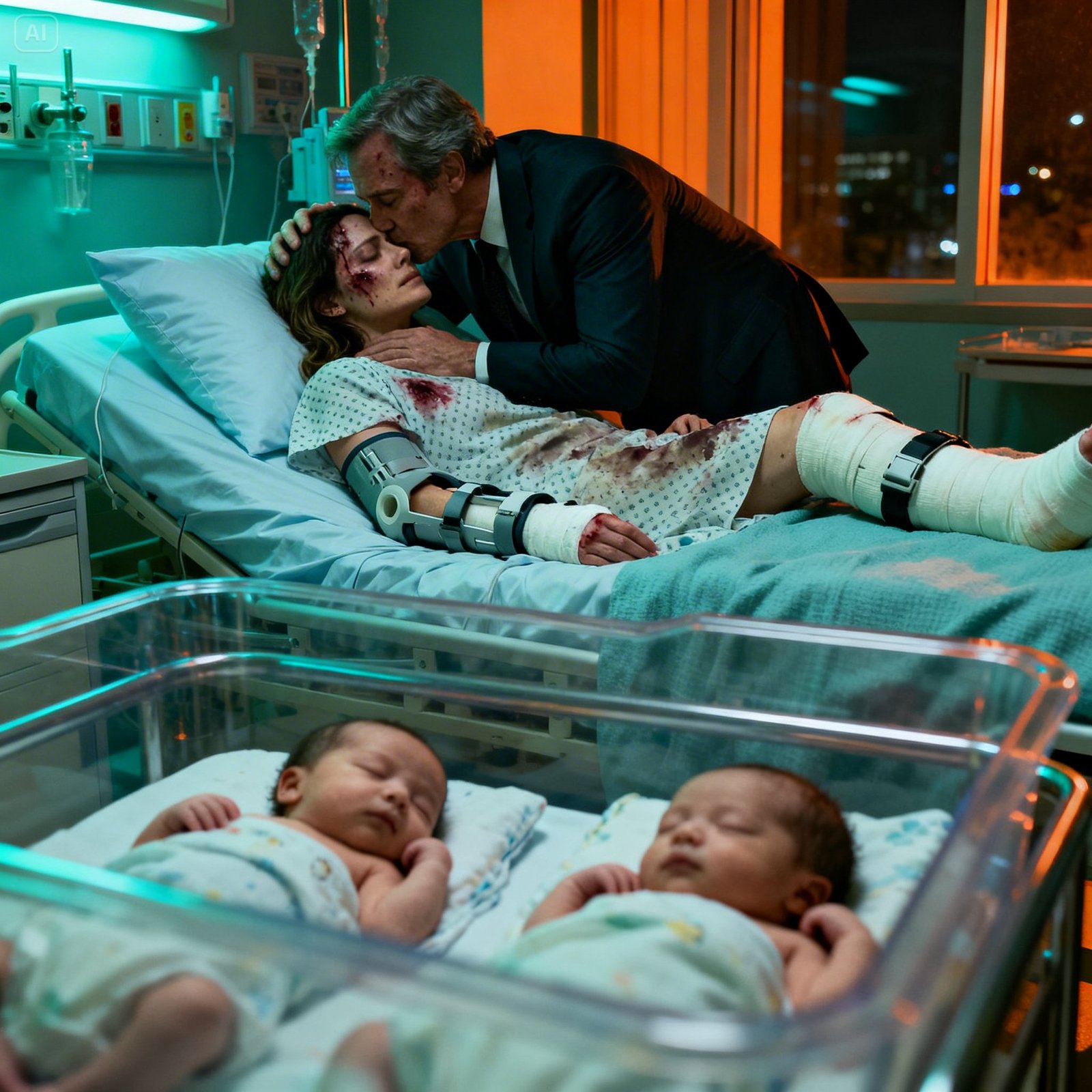 My body lay broken beneath a thin blanket, stitched and aching after a brutal emergency surgery that saved my twin daughters.